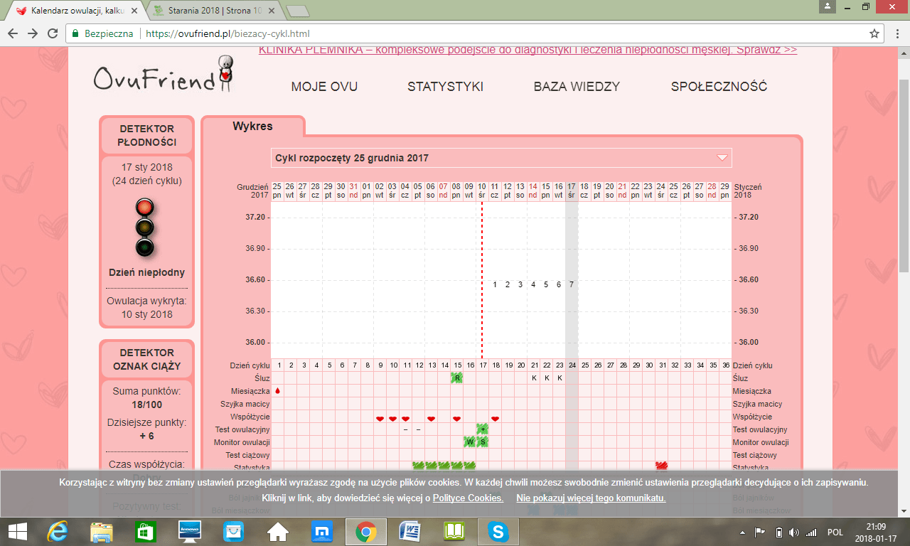 Tak się przedstawia mój kalendarz na ovufriendbez temperatury, ale to nic