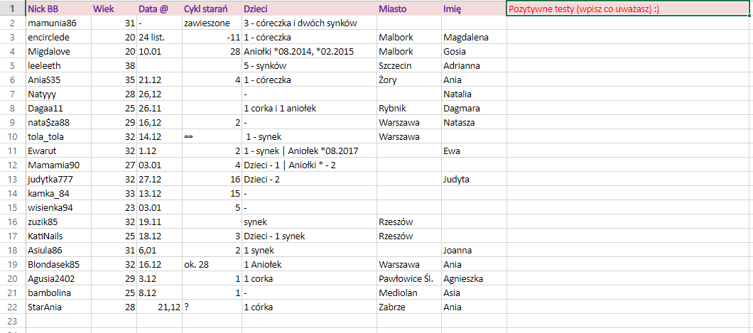 Kochana jak będę miała jutro na papierze że beta rośnie to wtedy:* na razie termin @ przede mną i kurcze różnie może byćJako, że mamy już jedną szczęściarę @KatiNails postanowiłam dodać nową rubryczkę w naszej tabelce: