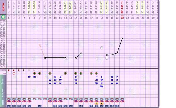 Najpierw mierzyłam temperaturę i ciągle miałam 36,2. Później padł mi termometr i musiałam zamówić nowy (tym razem zainwestowałam już w owulacyjny, bardzo porządny). 4 dni nic nie mierzyłam i akurat wtedy wypadały dni owulacji wyliczone wg suwaczków i na podstawie poprzednich cykli. Wszystko do tej pory było bardzo regularne, jak w zegarku - @ przychodziła co do godziny!