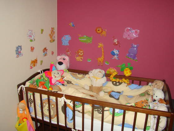 No, to jak se tak mamy pokazywac, to ja mam plan miec taki pokoj dla mojego niesplodzonego Babla - mam juz komode, troche wysoka, no ale dobra Nie to, ze specjalnie kupilam, bo jeszcze tak mnie nie pogrzalo, po prostu mamy komode z teku, prezent od szefa (znudzila mu sie...):