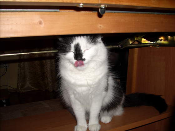 Sailor, mój jak nabroi i go pokrzyczę to w nocy przychodzi się przytulać:) Kładzie mi się na brzuchu albo na piersiach, łepek na mojej buzi i czasem liże mi nos:) A najśmieszniejsze jest jak łapkami obejmuje moją twarz:) Kochana z niego bestia, poza tymi momentami kiedy niszczy mi kwiaty:)