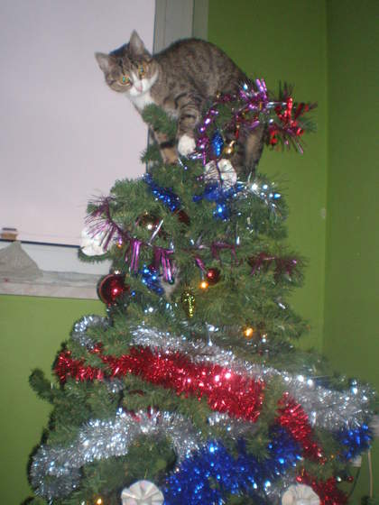 Ah też chcę taką choinkę z pomarańczami, piernikami, ale nie wiem czy w ogóle ją postawię, mam kota furiata i ona nie wytrzyma dłużej niż jeden dzień. Na dowód mam kotkę teściowej co zrobiła nasza gwiazda świąteczna:-):-)