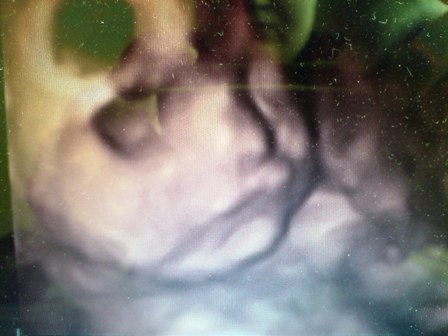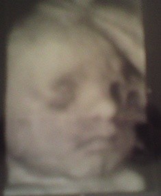 I takie małe zdjatko z usg, dzidzia się strasznie zakrywała rączkami, więc ciężko było ładnie buzię uchwycić. Wszyscy mówią, że do męża podobne heheh nosek i ustka. Ciekawe czy taki powazny w męża będzie synek
