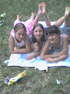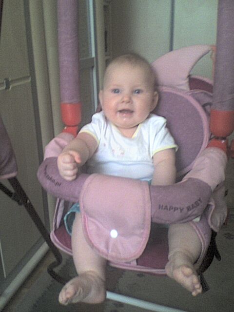 Wogóle to ostatnio znów mało śpi,w nocy budzi się teraz po ok.3 godz.A je dużo gęstej kaszki na dobranoc.A to fotki z wczoraj.Zuzia z koleżankami(to ta w środku)
