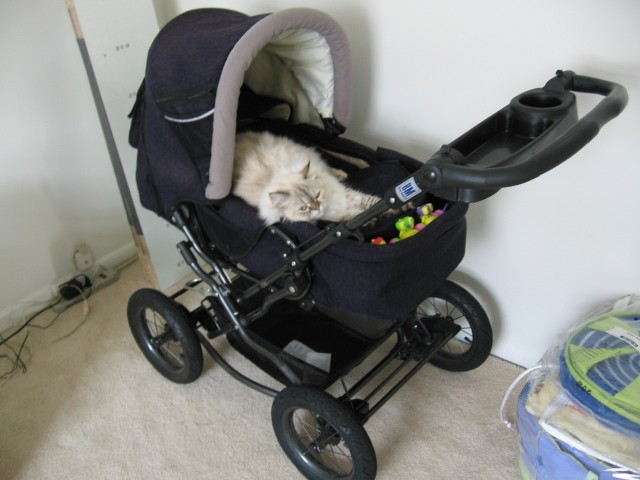 Tak robilam jak bylam dzieckiem, mialam czarnego persa, ktory na wszystko mi pozwalal, ubieralam go w ciuszki do wozka przykrywalam kocem i na spacer....kot spal jak zabity:-)gorzej jak jakas baba chciala zobaczyc moja laleczke