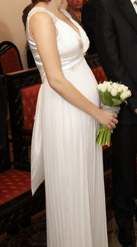 A to ja - w ślubnej- jakiś 6 miesiąc, w niebieskim- 3/4 dni przed porodem