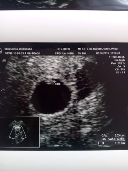 Wieści dobrych nie mam ale nadzieji nie tracę... Pęcherzyk odpowiada tygodniowi ciąży ale zarodek jest o tydzień młodszy i bez serduszka. Obok pęcherzyka są dwa spore krwiaki. Dobra wiadomosć jest taka ze jakby ciąża obumarła ten tydzień temu to pęcherzyk by się zniekształcił a on jest idealnie okrągły... Już sama nie wiem co myśleć, lekarz kazał nie tracić nadzieji ale szanse nie są duże. Mam lutrine i w sobote nastepne usg wtedy wszystko bedzie wiadomo. Chyba została mi modlitwa....