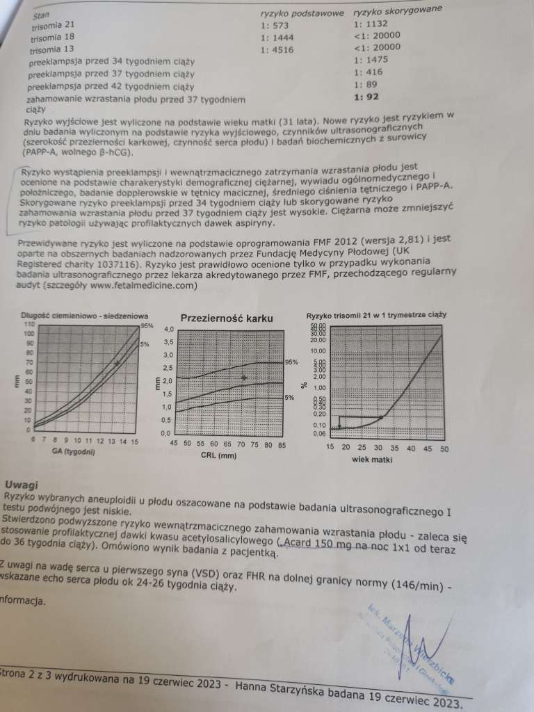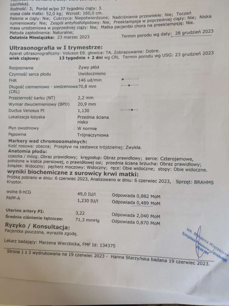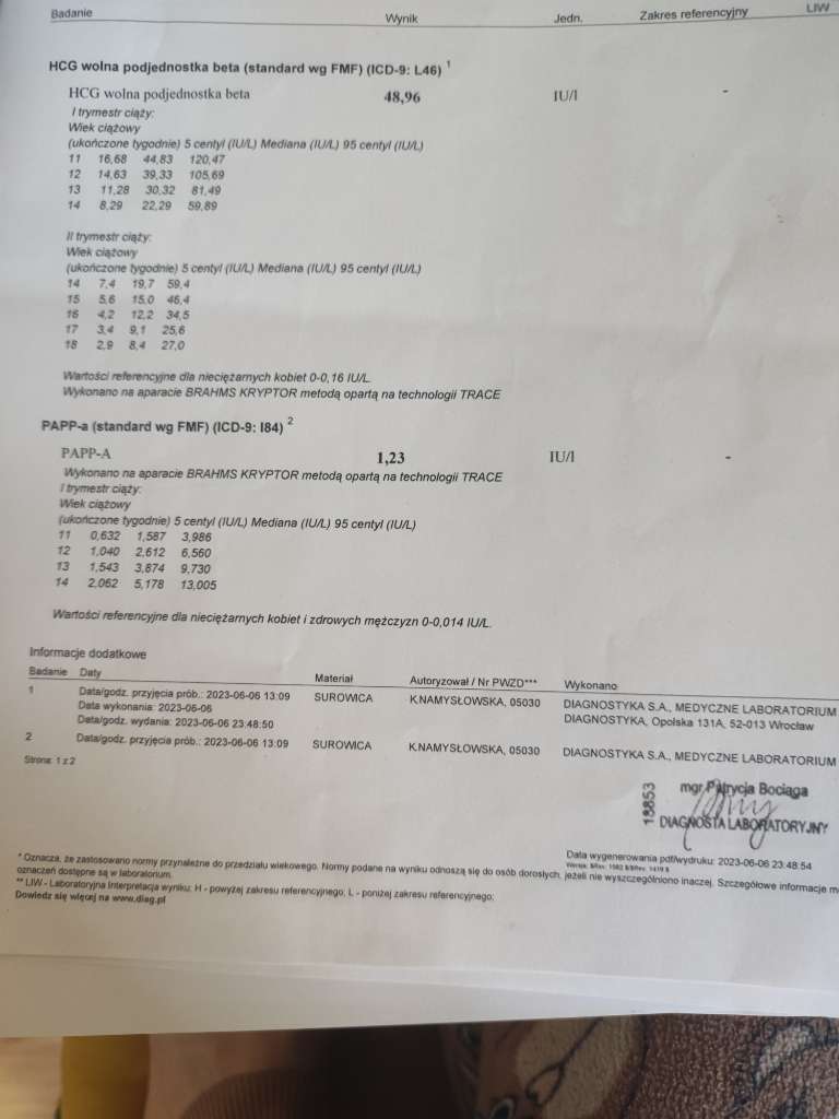 Ale poczekaj spokojnie, nie martw się samym wynikiem się nie przejmuj bez usg. Ale Cię rozumiem bo miałam też niskie białko i średnio mi wyszedł ten pappa i teraz też się martwie i rozważam nifty, ale już sama nie wiem.Dziewczyny, jestem przerażona. Wczoraj robiłam pobranie na test podwójny Pappa, dziś otrzymałam wyniki. Wolna beta HCG 265, białko pappa 1.55 I/UI
