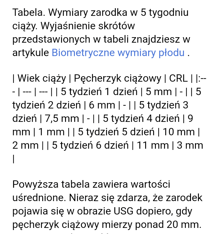 Ja miałam 7 mm i jak wpisałam w Google, żeby zobaczyć kiedy będzie serduszko przy takim pęcherzyku to właśnie pokazało 5+3 tak samo jak u lekarza. Chociaż każda aplikacja na telefon pokazuje inaczej. Dlatego nie ufam aplikacjom. To jest takie tylko podglądowe. U mnie wymiary pęcherzyka zgadzają się idealnie z tabelką poniżej i wiekiem ciąży z usg.