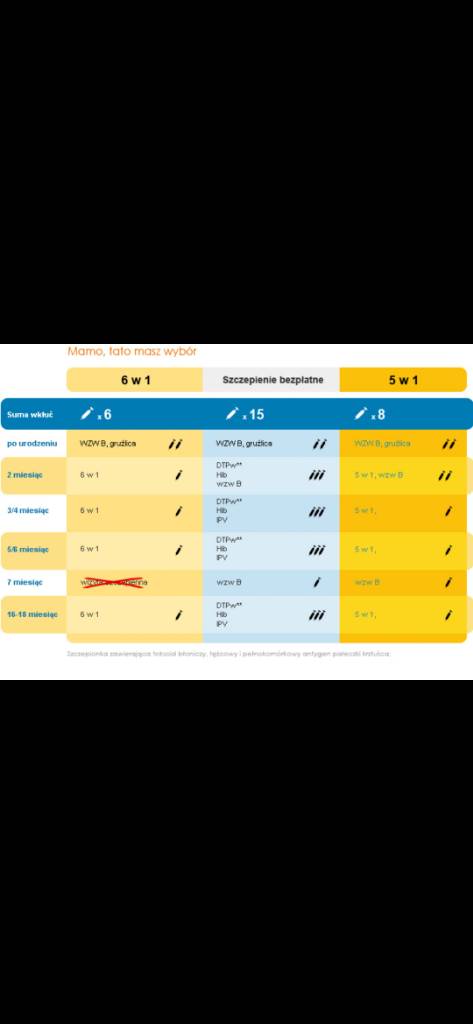 Pamiętaj, że przy schemacie 6w1 dziecko dostaje dodatkową (niepotrzebną) dawkę szczepionki na WZW.
