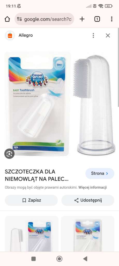 Ja używałam soli fizjologicznej jak nie było ząbków i właśnie taka silikonowa nakładka na palecJa mam taką na palec gumową i czyściłam dziąselka, ale nie pastą nie wiedziałam, że myje się dziąsła pastą do zębów![]()