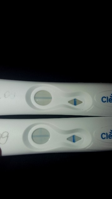 Dziewczyny pytam czy któraś z was tak miała. Test robiony 13 i dzisiaj 15.09 z porannego moczu. Na 1 widac bladziutką kreskę ale tylko na żywo, na 2 dzisiejszym jest mocniejsza. Robiła któraś z was ten test z clearblue? One mają tylko kreskę poziomą i testową więc nie wydaje mi się aby się odbarwiło.
