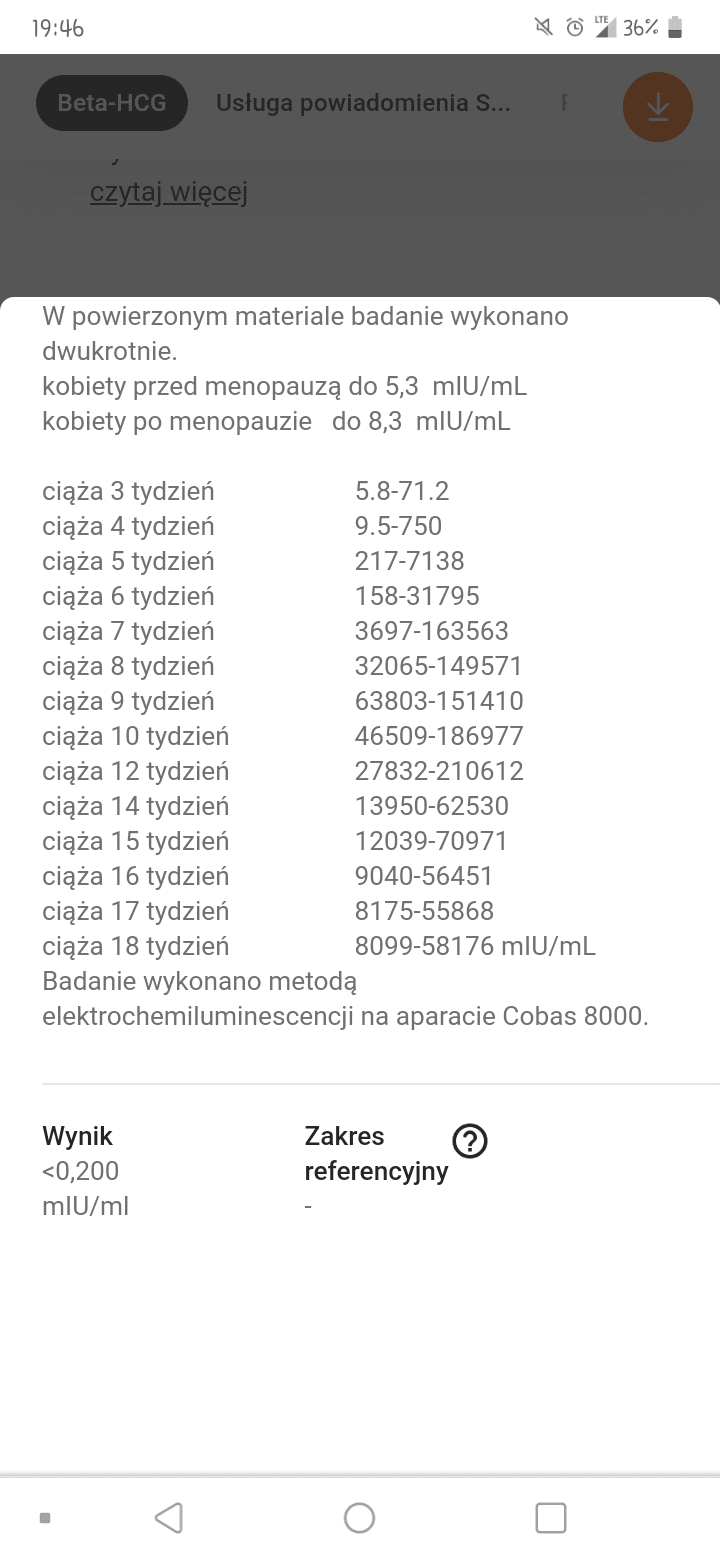 A masz normy na wynikach?Witam zrobilam test ciażowy z krwi wynik to 0.200 mlU/ml czy to oznacza ze jestem w ciazy czy nie ?