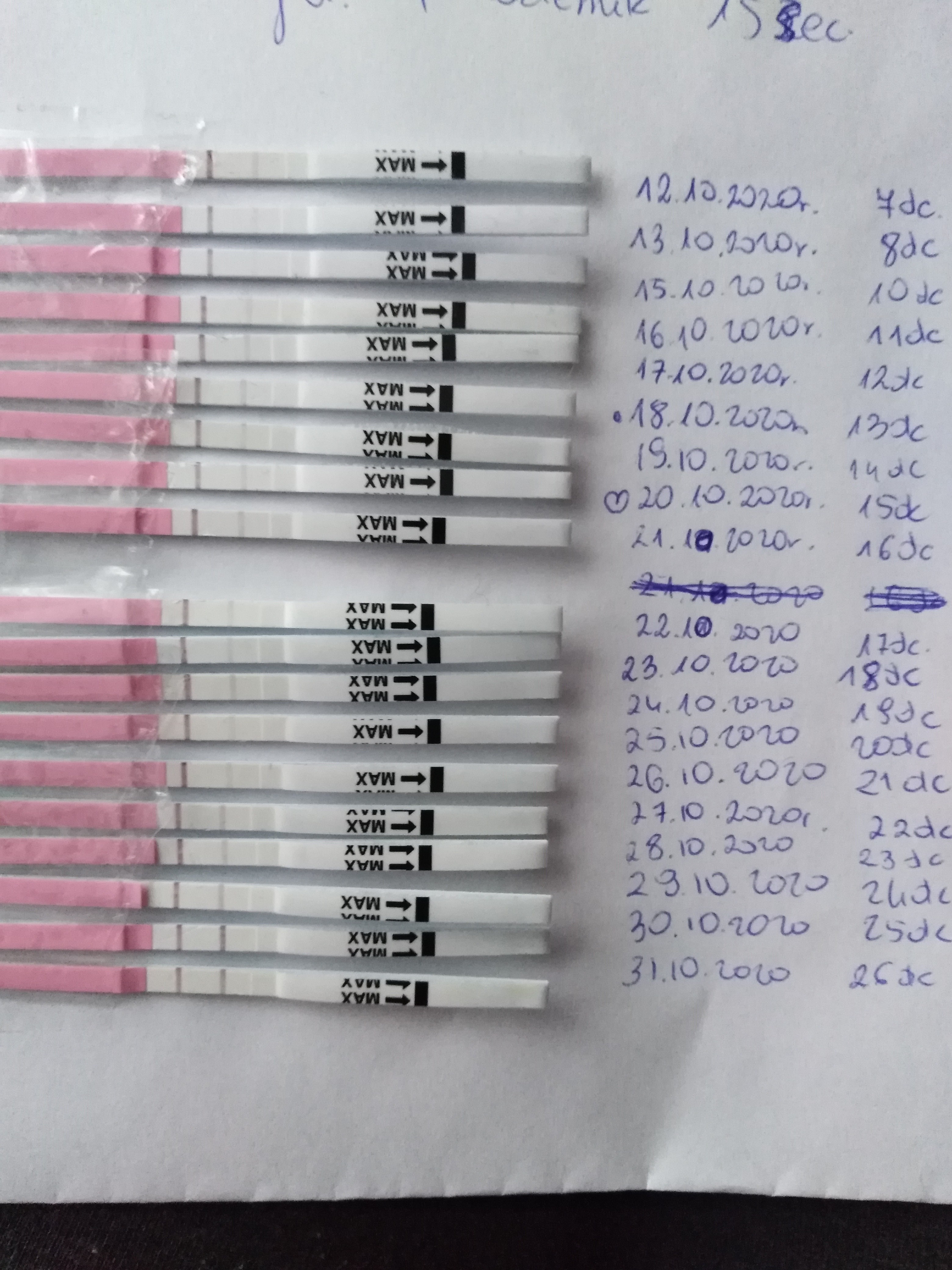 a ja dziewczyny wychodzi na to ze mam cykl bezowulacyjny, testy robilam wczoraj u dzis , trzymalam po 5 i 15 sekund. Testy wygladaly jakby byly zalane jakby cale mokre.. a kreska testowa prawie niewidoczna za to druga rozlana.. nie wiem o co chodzi czy te testy do dupy lub poprostu bez owulacji w tym miesiacu.