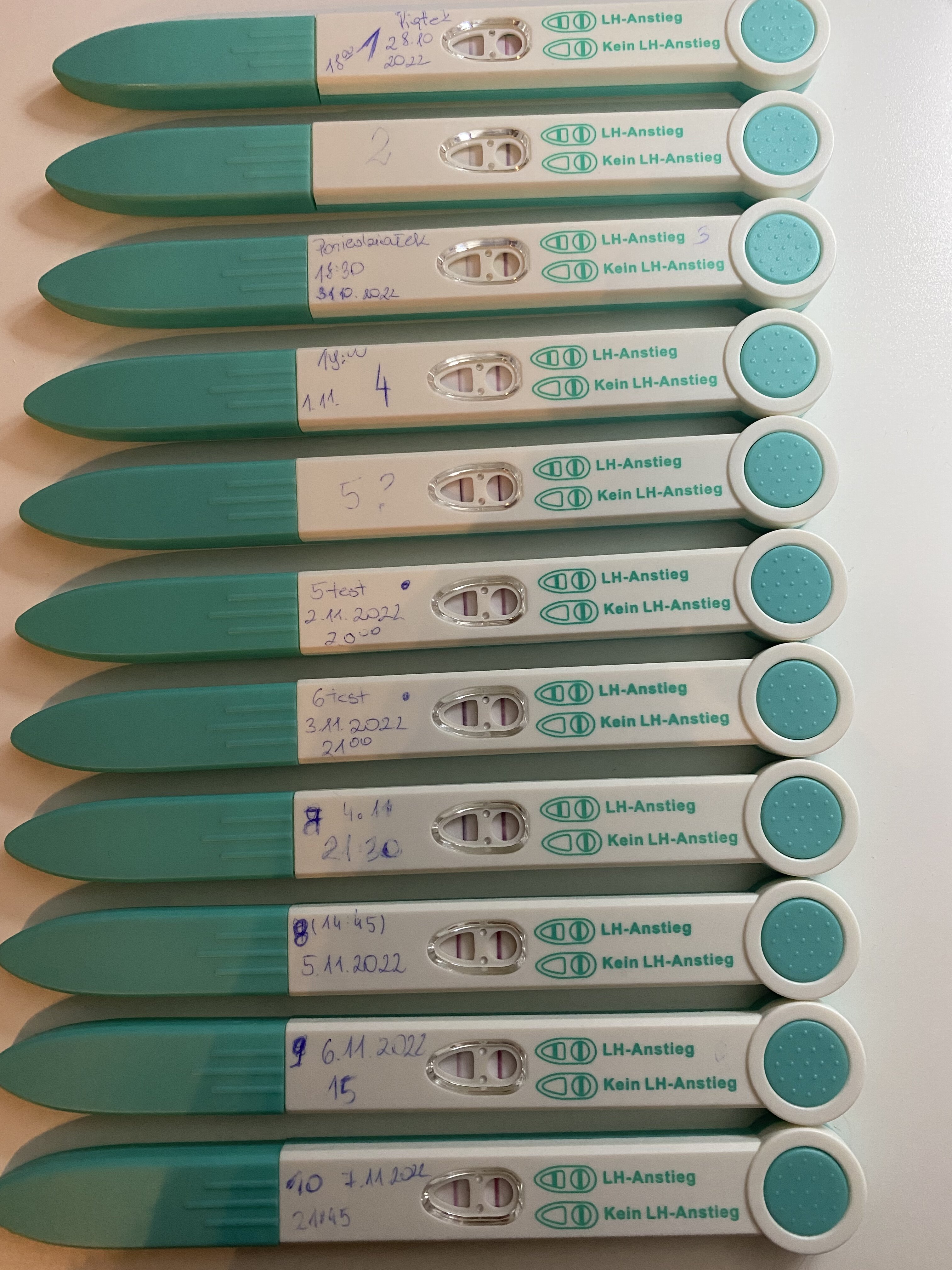 Dziewczyny mam pytanie. Po raz pierwszy stosuje testy owulacyjne. Czy w dniu, w którym aplikacja wskazała na tzw. plik lh, mógł on rzeczywiście wystąpić? Jakies dziwne wydaje mi się te kreski i nie bardzo wiem jak je interpretować. Nie zwracajcie uwagi na godzinę robienia testu bo są różne.