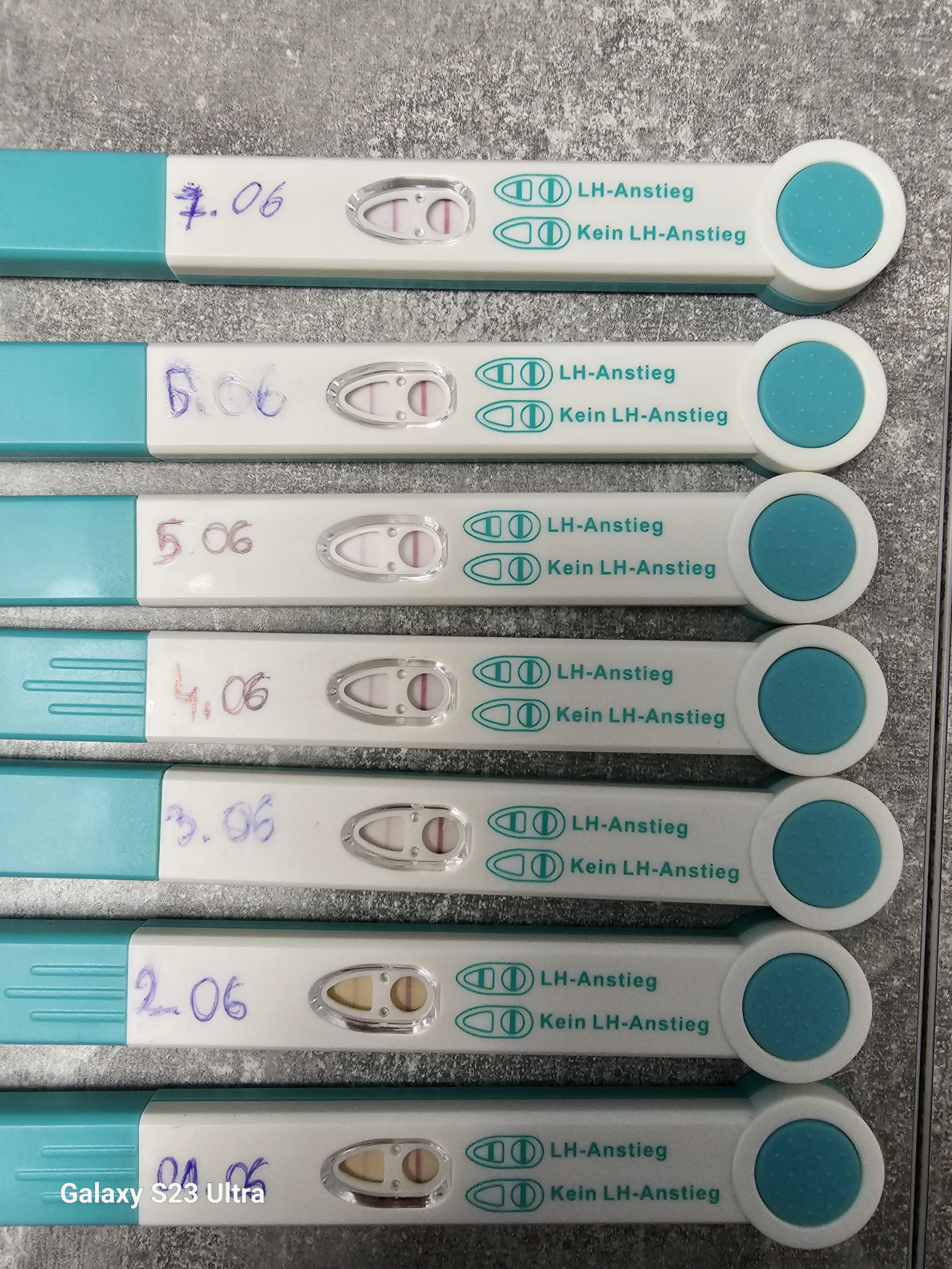 Dziewczyny może mi pomożecie bo ja już świruje. Robię testy owulacyjny I już sama nie wiem czy któryś jest pozytywny jeszcze jutro zrobię jeden. Najciemniejsza kreska jest z 7.06 ja już niczego nie jestem pewna im dłużej patrzę tym bardziej nie wiem