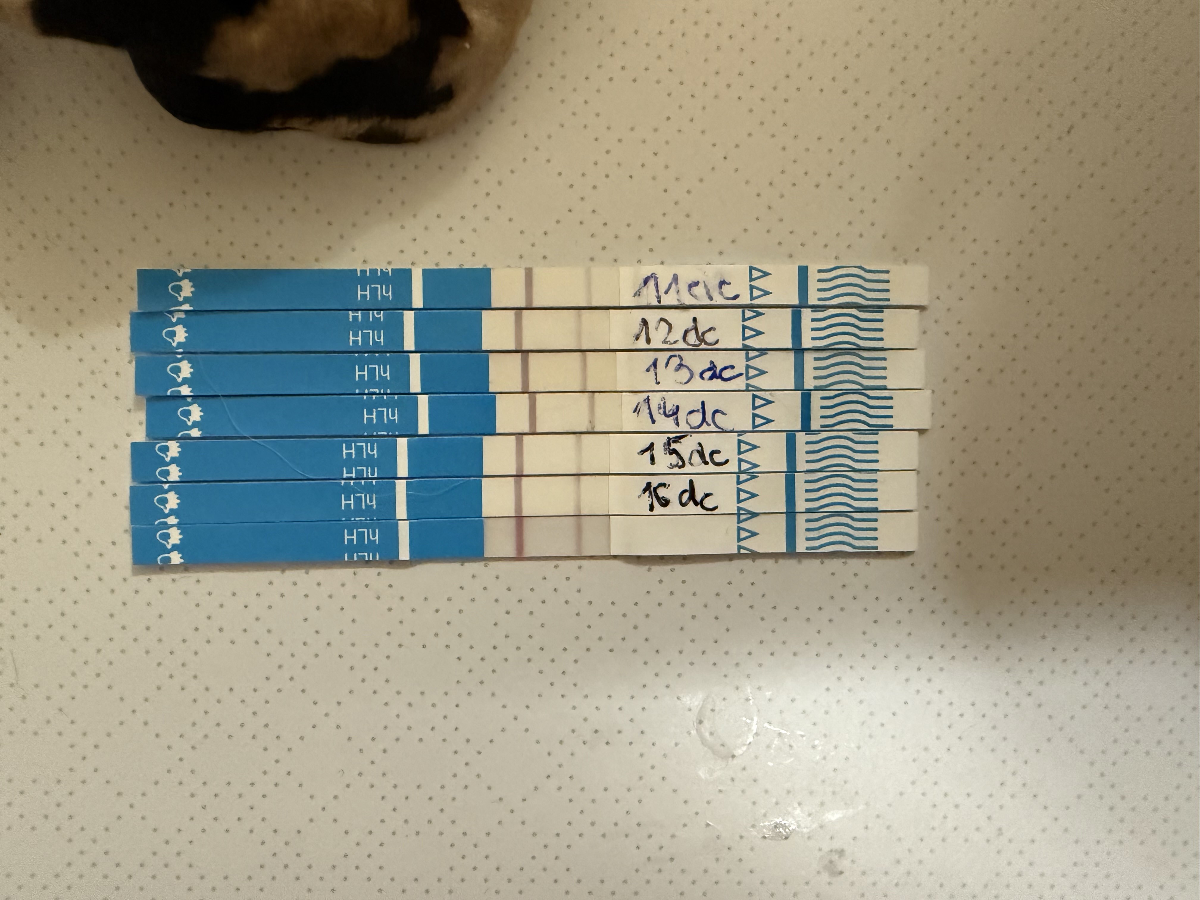 Cześć. Pierwszy raz w ogóle robię testy owulacyjne. Powiedzcie mi czy któryś z nich jest pozytywny? Ostatni robiony dziś 17dc.