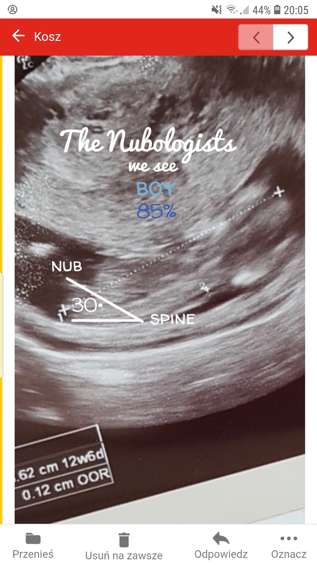 Hej dziewczyny. We wtorek miałam usg prenatalne.na pytanie o płeć doktor zaczął się śmiać i zapytał się co bym chciała ale nie odpowiedział na pytanie. Widziałam po jego minie że wie ale nie chciał nic powiedzieć. Zaczelam sie zastanawiac i trafilam na wasz watek o wyrostku plciowym. Moze odczytacie cos z mojego usg. Wedlug internetow i tego co wyczytalam to dziewczynka ale nie wiem czy dobrze widzę. Z góry dzięki za odpowiedz