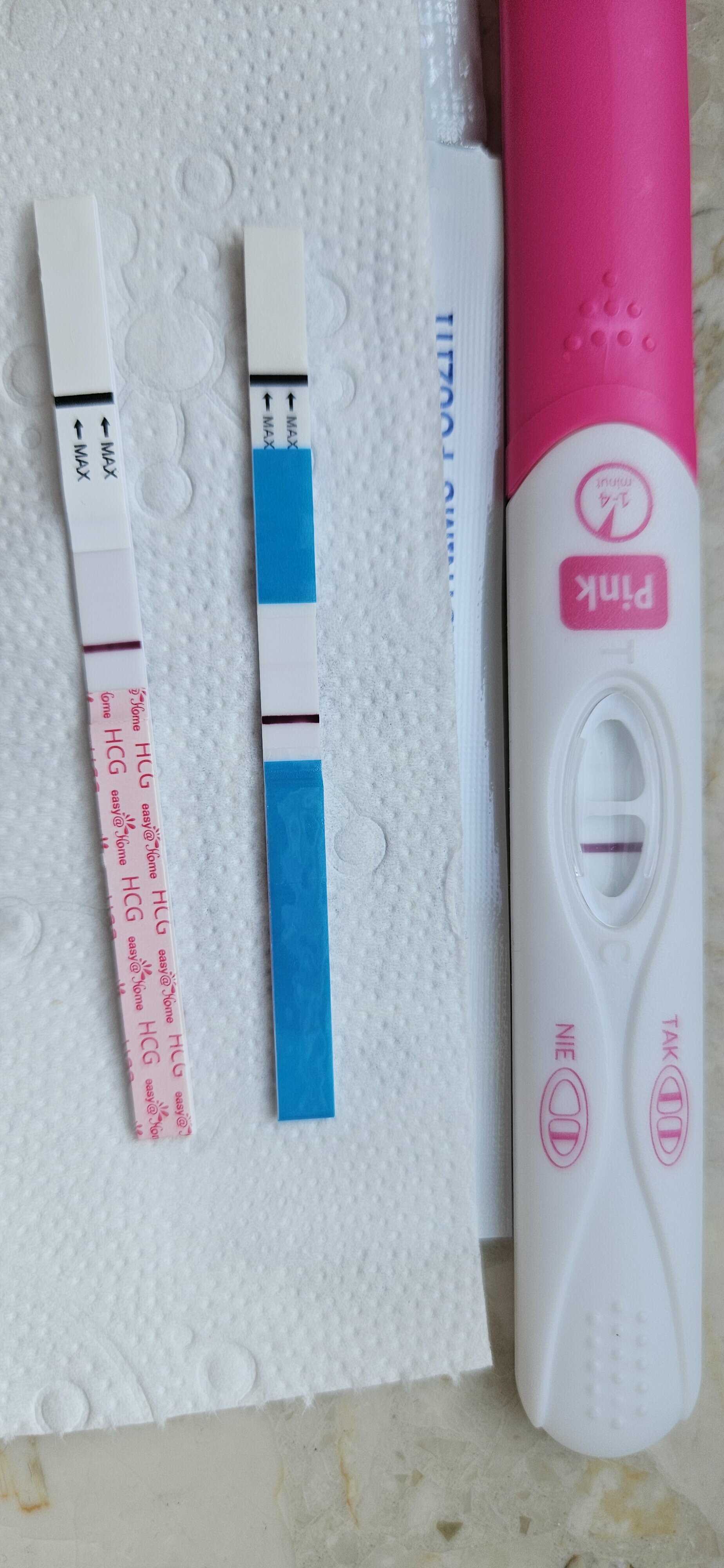W sensie zrobilam rano testy - tak liczba mnoga. I kreski nadal są, ale nie ściemniały. Także moja głowa się przestawia na kolejnego biochema