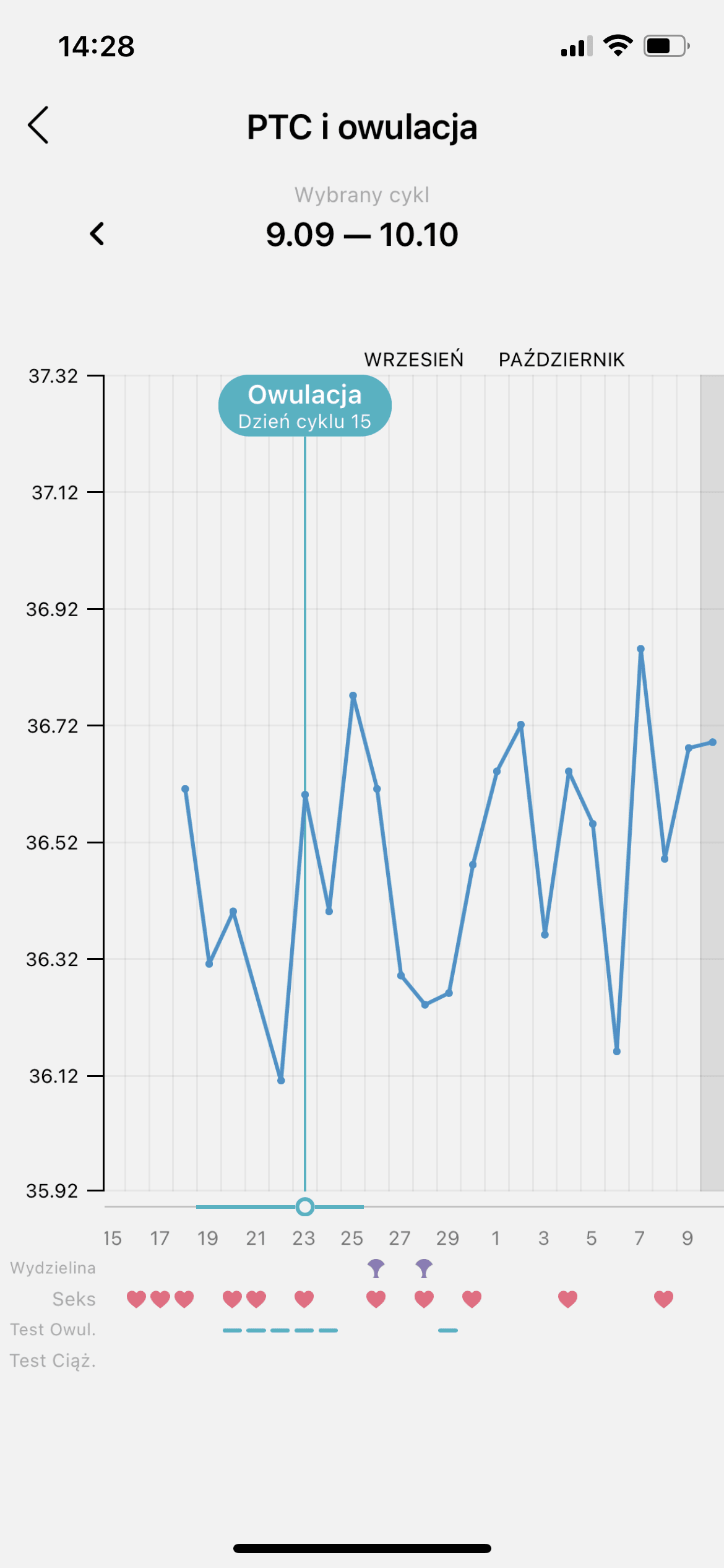 Byłam w 29dc. Nie stwierdził owulacji i tylko jeden pęcherzyk 13mm, jeśli mam na coś szanse, to na za 2 tygodnie, gdyby to jakimś cudem urosło. Temperatura tez to potwierdza, zanosiła się na owu w pewnym momencie, ale spadła. Wykres z flo.