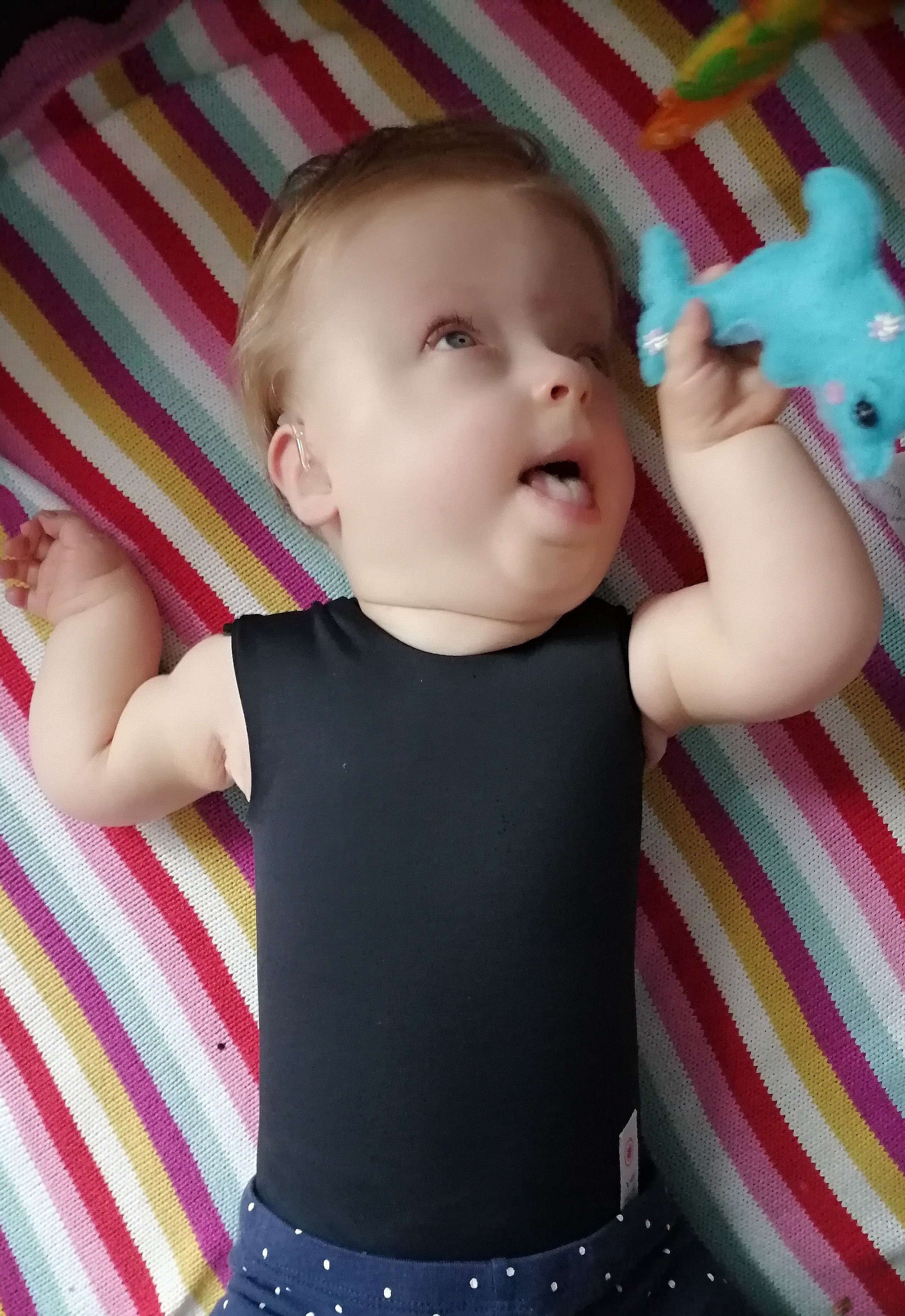 Czekamy na orteze tułowia, w formie obcisłego body. Nie pamiętam czy o nim Wam pisałam. Czekamy aż fundacja prześle pieniądze z konta Tosi dla firmy i wtedy je dostaniemy. Powinno wzmocnić czucie głębokie tułowia, poprawić stabilność Tosi... No nie mogę się doczekać