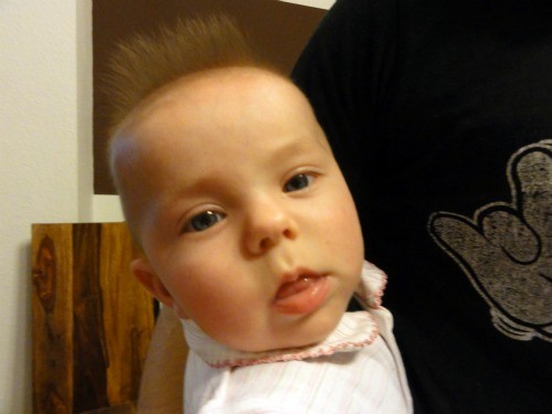 ) ma 4,5 miesiaca i juz dwa zabki na koncie :-) te wloski tak jej zawsze smiesznie stoja