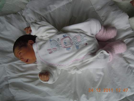 w dzień praktycznie śpi, ale w nocy za bardzo nie chce, dziś zasnęła dopiero o 2, ale za to pospaliśmy (z przerwami na 3 karmienia) prawie do 11. Jestem w niej totalnie zakochana i mogę na nią patrzeć godzinami, a tatuś świata nie widzi poza córeczką...