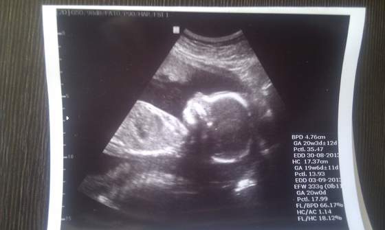 Melduje sie po wczorajszej wizycie. Mialam Usg polowkowe. Wszystkie pomiary wyszły dobrze. Dzidzius kręcił sie i nie chcial sie fotografowac wiec mam tylko jedno zdjęcie. Wyszedł mi stan zapalny w cytologi i dostalam globulki. Wysprzeglilam sie z 200 zł na wizytę plus dostalam badania do zrobienia ok.150 zł no i te globulki ok.40 zł. Wiec 400 zł wydane. Masakra! Najważniejsze ze synus zdrowy:) Oto fotka.