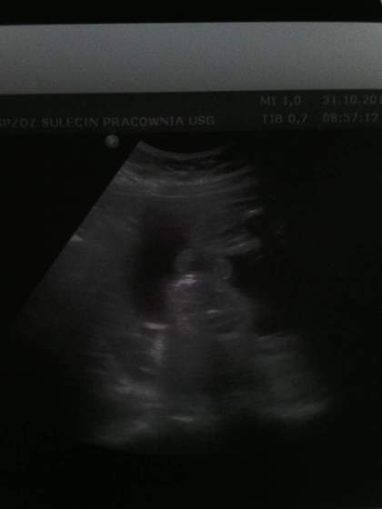 Oficjalnie przedstawiamy Franka :) jest cudny. Rośnie zdrowo i po prostu nie mogłam się na niego napatrzec. Jest idealny :) wazy 1300 g więc zapowiada sie że będzie wagowo jak chłopaki, nie za duży. Na USG fikal jak szalony, aż pani nie mogła się nadziwic. Leży w poprzek i buziaka do zdjęcia za chiny nie chciał wystawić. Pani doktor przelaczala na 3d bo chciała zrobić zdjęcie buziaka i.... jak tylko przelaczala to mały obracał główkę. Ja mualam monitor na ścianie przed sobą więc widziałam go cały czas. Długo byłam bo pani chciała zrobić nam to zdjęcie i...nie dał. Charakterem tatusia :D