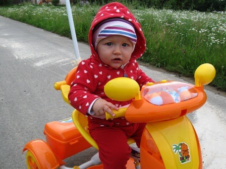oczywiście nie siedzi w nim cały dzien, bo jak tylko uda nam sie ją zająć zabawkami na podłodze to jest ok i nie wsadzam jej niepotrzebnie do tego chodzika
