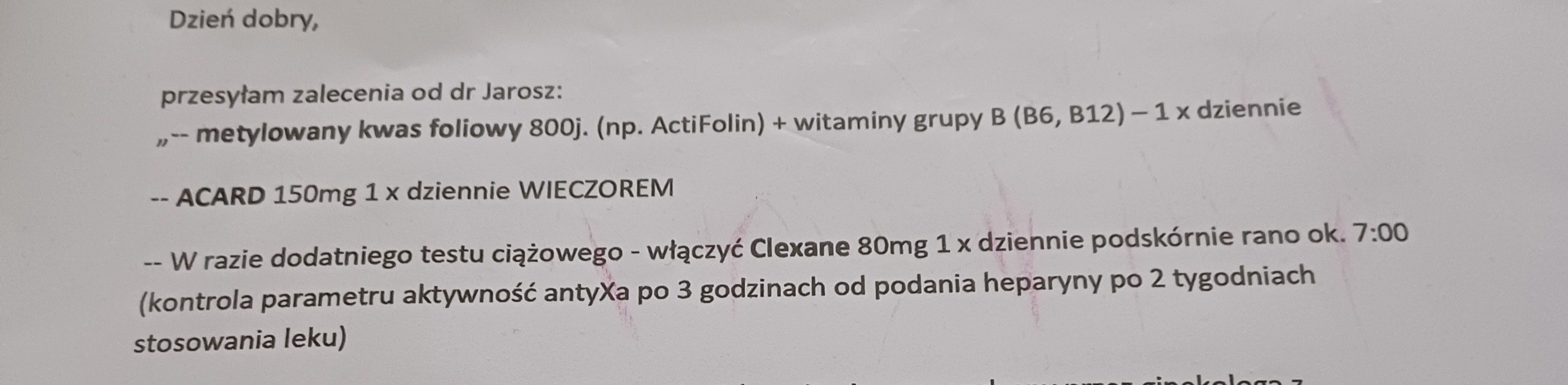 Na prawdę można się pogubić w tych mutacjach i różnicach zdań co do zaleceń od lekarzy😵‍💫 ja przy swoich wynikach odnośnie trombofilii dostałam takie zalecenia jak poniżej, od immuno, tylko że ja oprócz PAI mam czynik V Leiden dodatkowo, to też inaczej.
