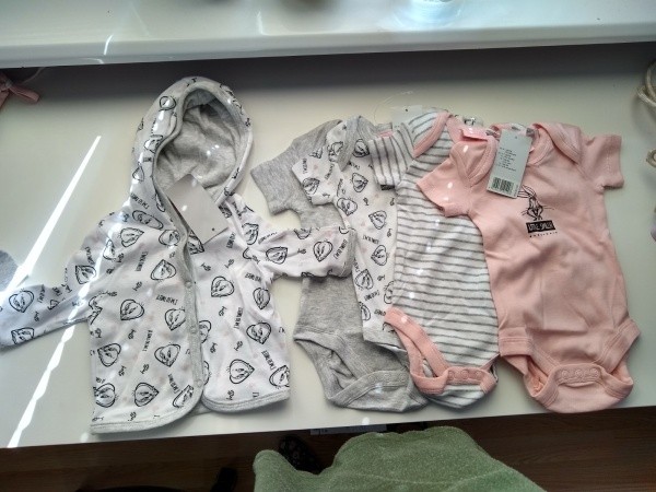 Wróciłam z Lidla. Jakbym pojechała godzinkę później to chyba zastałabym puste kosze. Peeeełno brzuchatek. A ubranka ładneChciałam wziąć rozmiar 62, ale jak otworzyłam i zaczęłam oglądać to stwierdziłam, że Blanka na pewno nie urodzi się tak duża, więc brałam tylko 50/56. I w końcu nie wzięłam skarpetek. Tylko na bodziaki z długim rękawem się nie załapałam, były już tylko większe.