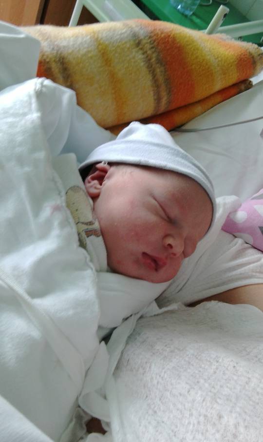 Urodzona o 9:32, 3200g i 57cm. Śliczne ciemne, lekko kręcone włoski.