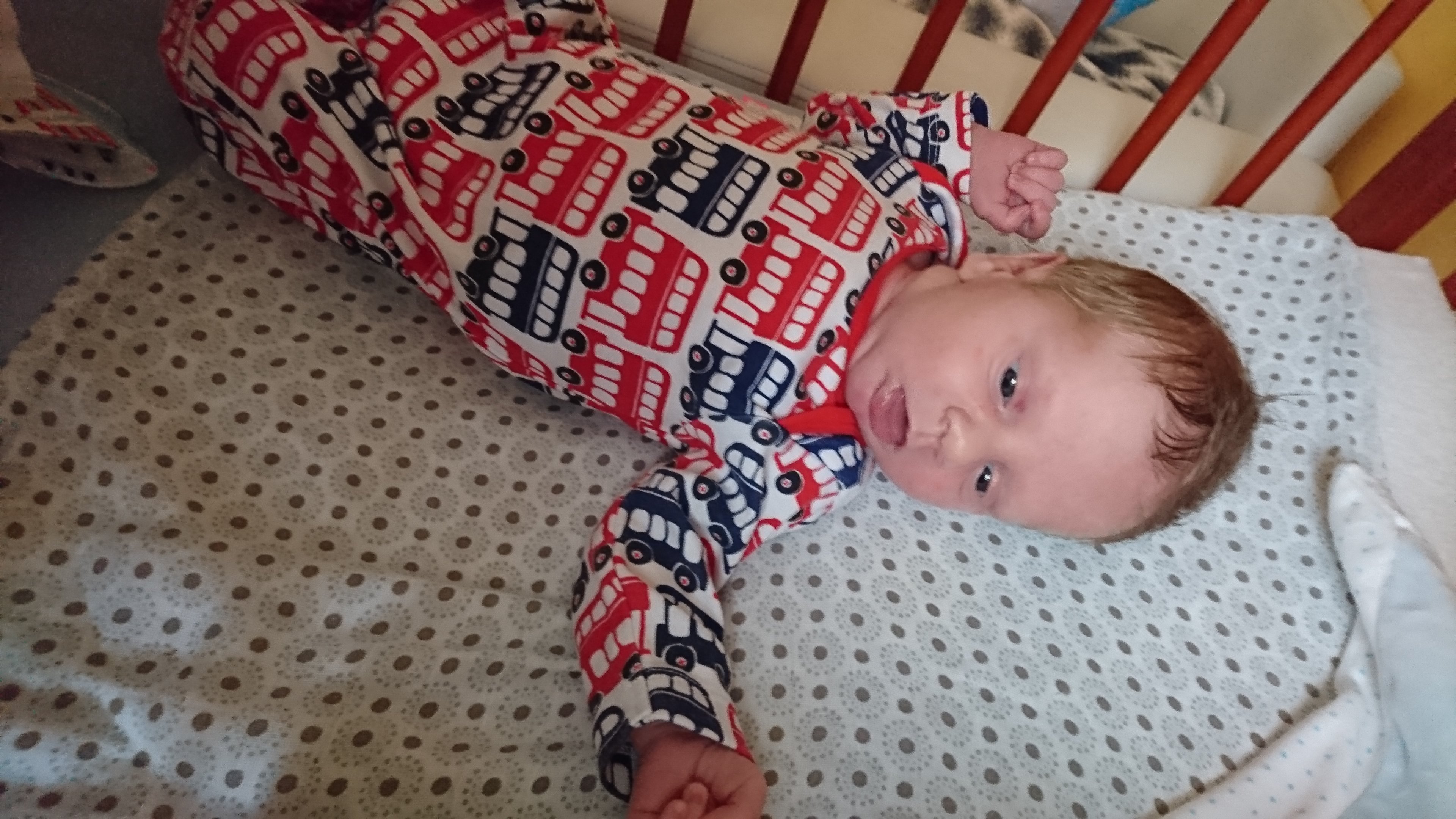 No właśnie już.. Szok... bo gdyby ogarnial swoje ręce to by na brzuch fiknął... Śmiesznie bo ta ręka utknęła mu pod ciałem i się wsciekał... z brzucha na plecy to juz z tydzień temu się fiknął... On opanował przerzucanie ciężaru ciała... GŁOWĄJuż???????