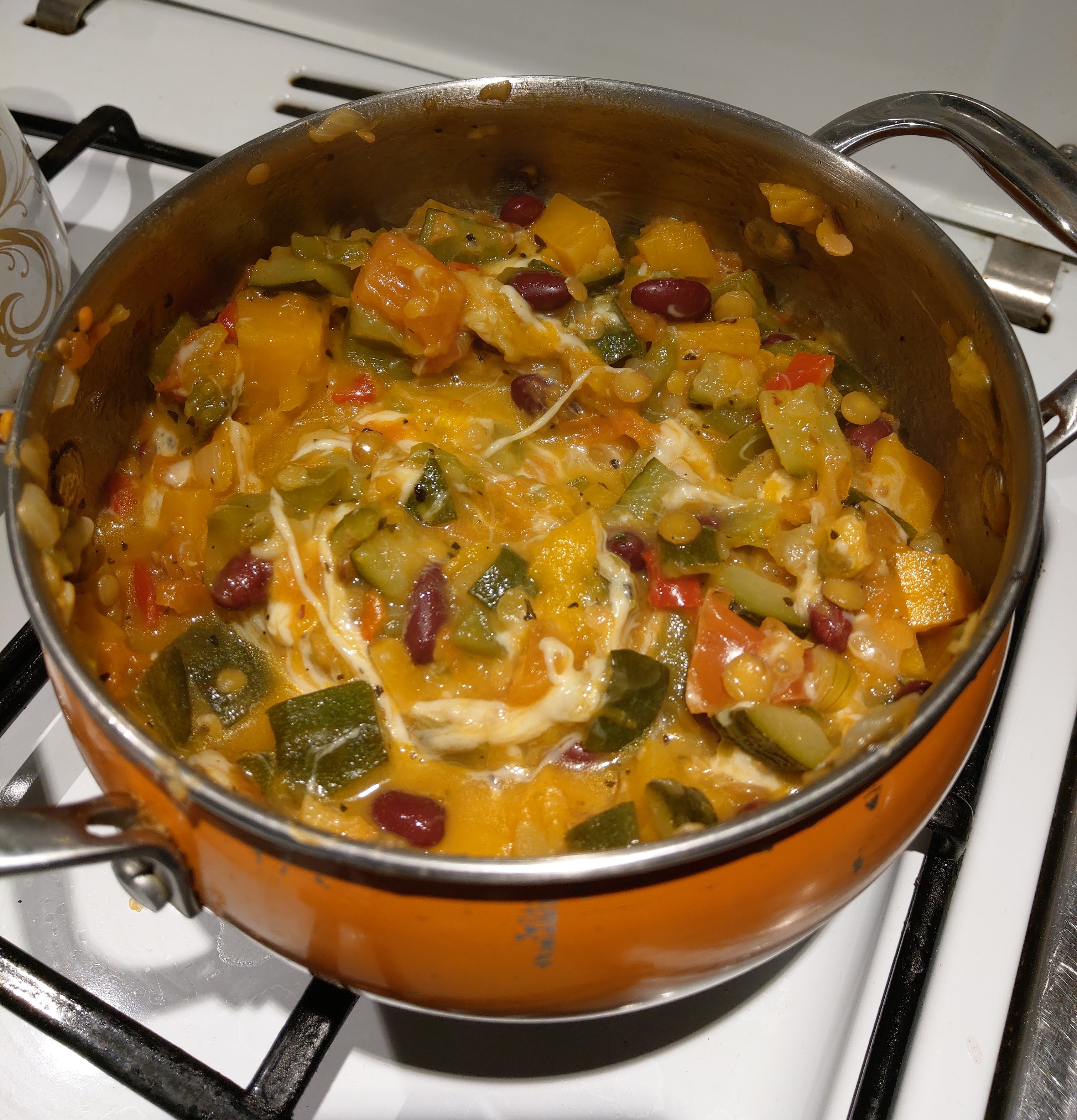 Wygląda obłędnie. Moje smaki. Dzisiaj już po obiedzie, ale zrobiłaś mi takiego smaka tym zdjęciem, że zrobiłam screena i muszę to koniecznie zrobicA tu pizza wegetariana bez ciastaw tym garnku jest cebula papryki dwa kolory,cukinia,pomidory, dynia, soczewica czerwoną i zielona, fasola czerwoną,ser żółty ,bazylia Zobacz załącznik 1230128