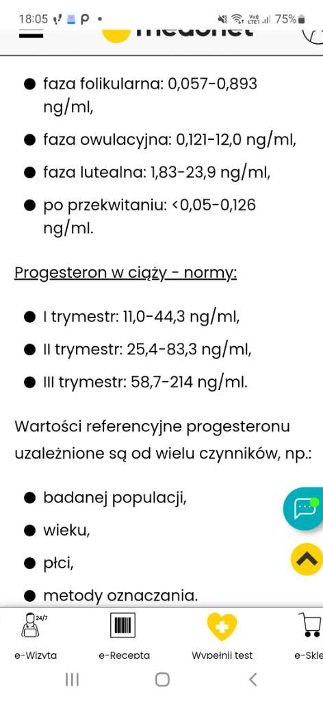dziewczyna tez nie napisala jednostki w jakiej ma progesteron, a sa dwie w zaleznosci od laboratoriumnorma do 5 jest nie w ciąży tylko tak jak napisałaś od 0,1 do 2,5. A zalecane jest 1,5.