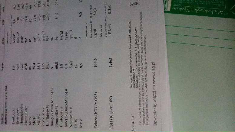 O kurde. A ja myślałam, że jak HGB w normie to tym samym zelazo jest ok. Az musze się mojej gin zapytać o to.Jedno badanie morfologia + żelazo to z 2014-03-11