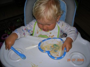 dwie pierwsze fotki to już samodzielne jedzenie, nie miał jeszcze roczku