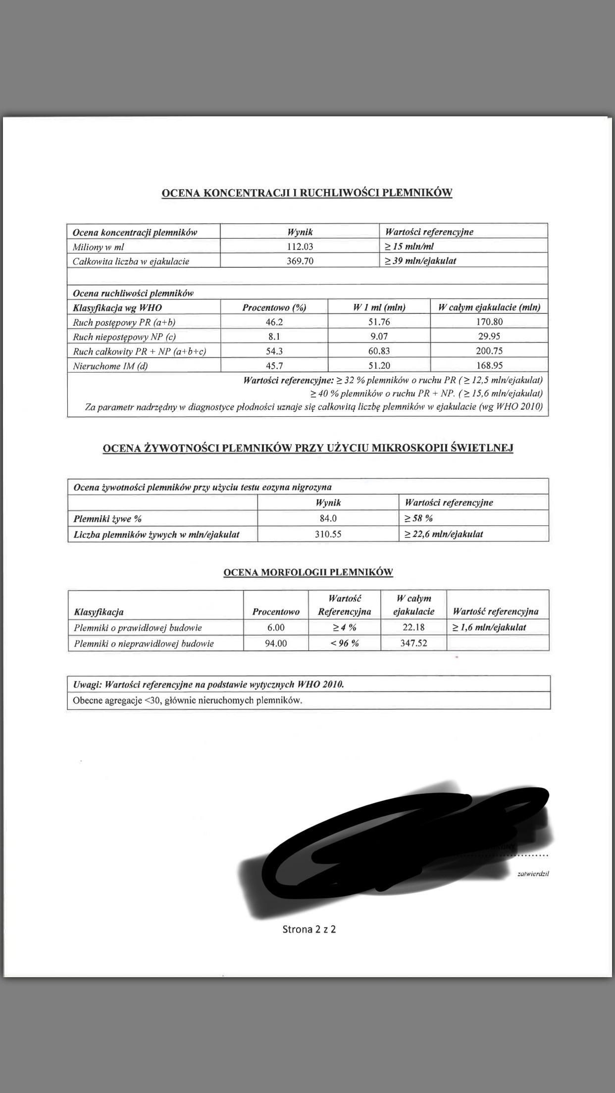 Potrzebuje interpretacji wyników seminogramu martwią mnie niektóre wyniki .