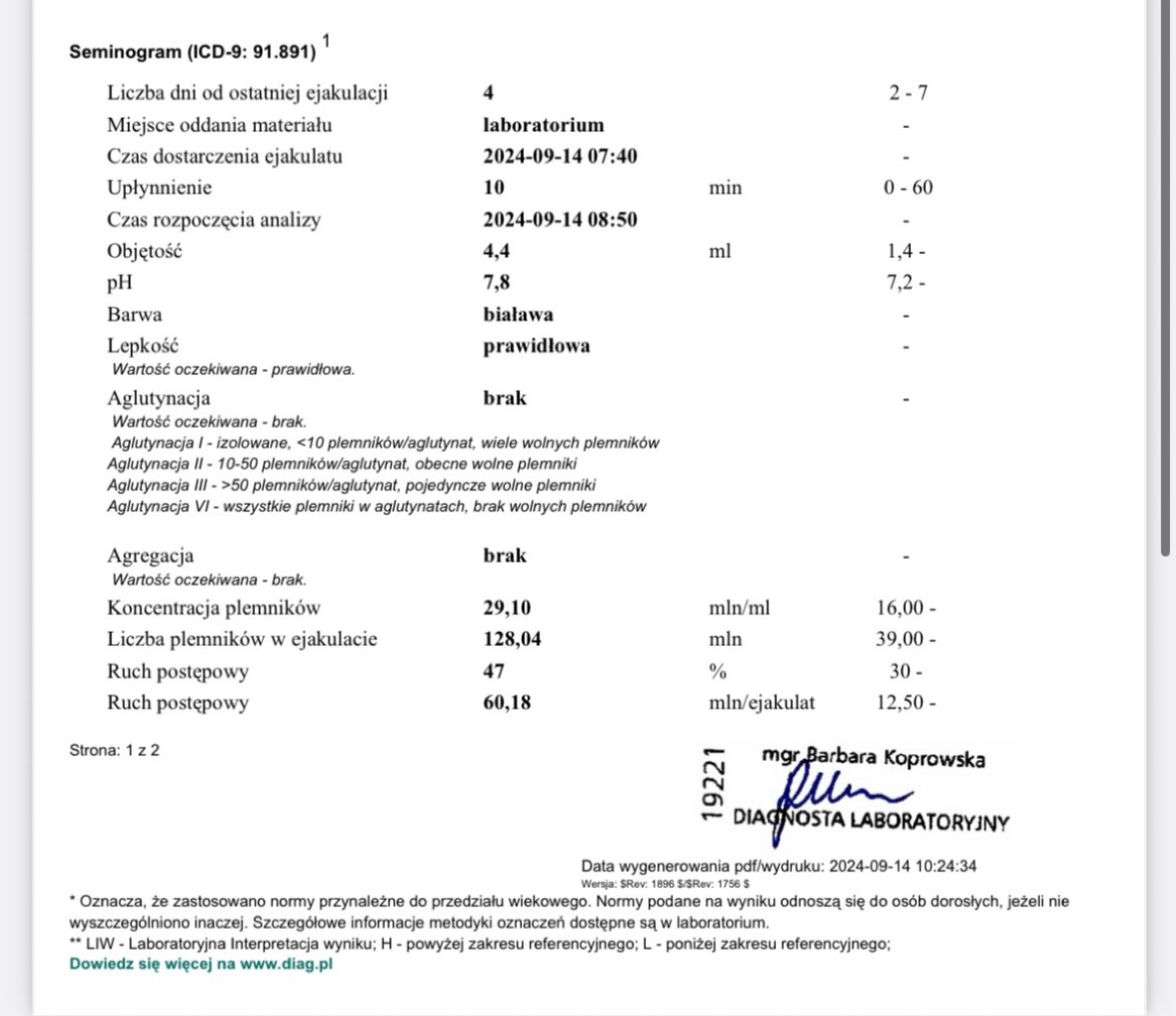 A ruch nie uważasz że jest tragiczny?Jak najbardziej w porządku wyniki. Jest ok. Normy są spełnione. Jak najbardziej jest szansa na naturalną ciążę. Ze strony partnera nie powinno być problemu.Musisz się skupić na sobie w takim przypadku.