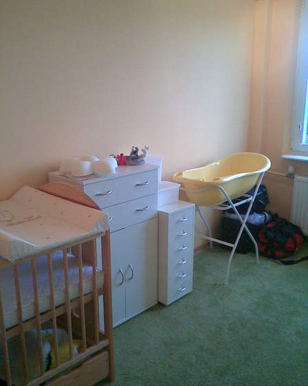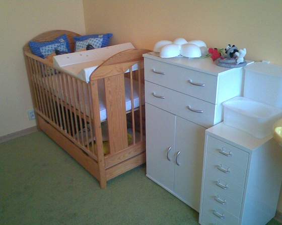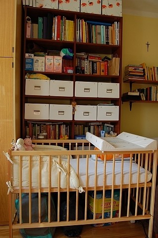 A ja kiedyś pisałam, że jak będzie łóżeczko to się pochwalę jak to wszystko wygląda w naszej klitce... No to się chwalę - białe pudełka to moja komoda ;-):-) byle do grudnia