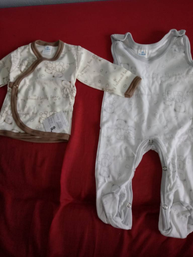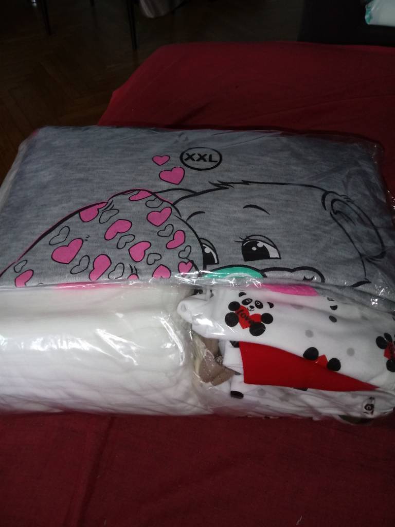 Ostatnio przyszła mi kolejna paczka z wyprawkowa. Ciuszki młodego wrzucam, poza tym koszula nocna dla mnie i 10 pieluch tetrowych, czyli 1/6 tego co potrzebuję