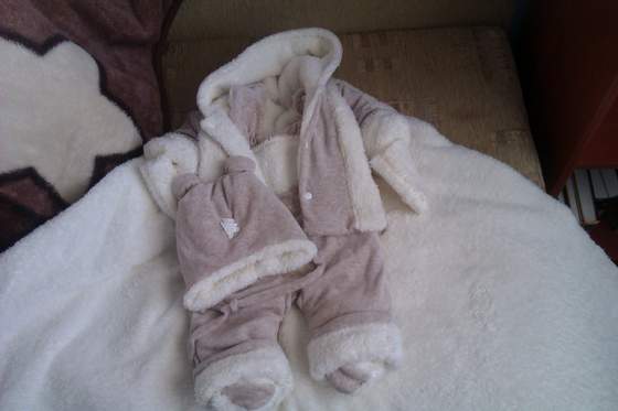 pierwszy to taki cieplejszy pajacyk-kombinezon w kolorze błękitnym, miał metkę- w lumpku dałam 15zł