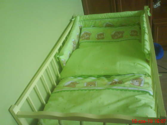 A łóżeczko jeszcze takie znalazłam: ŁÓŻECZKO SOSNOWE + POŚCIEL +PIANKA KOKOS -9 EL (1054890407) - Aukcje internetowe Allegro