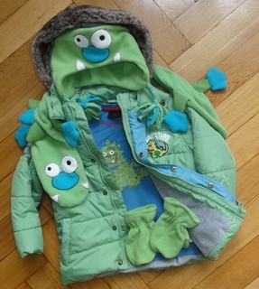 Dla Olego kupiłam już taką kurtkę, ale poluje jeszcze na czapkę i szalik, żeby skompletować coś takiego: