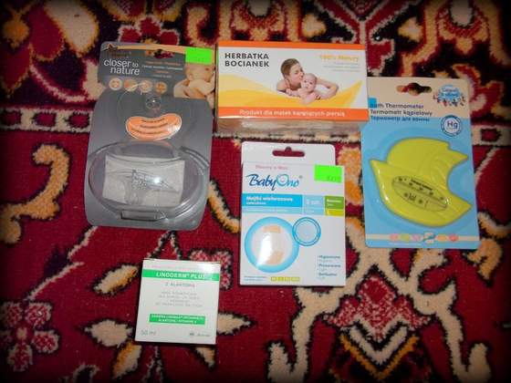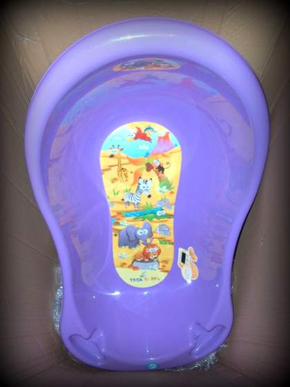 - fioletowa wanienka Tega 86 cm (ma od razu termometr paskowy, ale wzięłam dodatkowo normalny) - 19,90