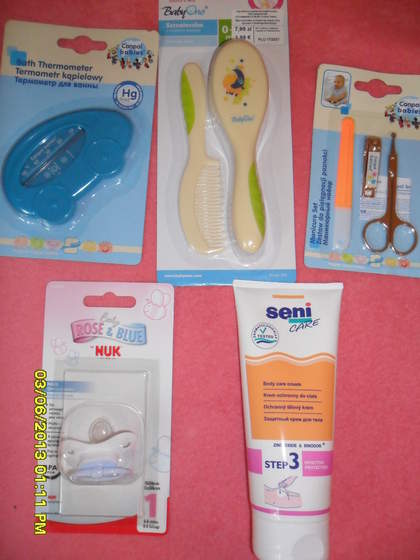 Tak jak Pietrucha, też zakupiłam biedronkowe monie (takie same i do tego były ostatnie, dla chłopczyka:) oraz pudełeczko na smoczek. A zestaw do czesania (jako konsultantka zapłaciłam duuużo mniej) upolowałam taki:
