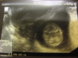 2. Dzidzia z boczku, po prawej główka, widać kręgosłupek