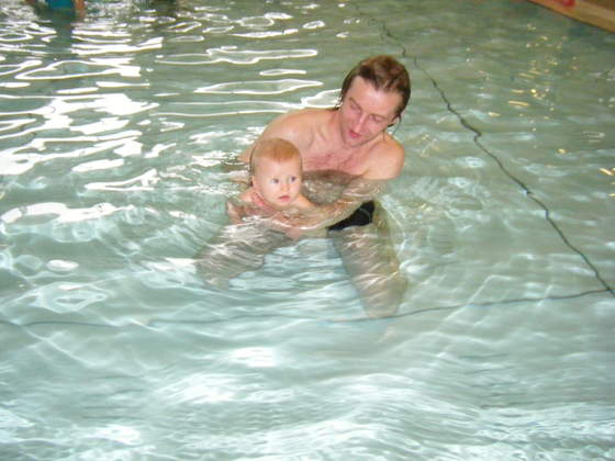 :-)A to Jagoda z tatą na basenie. Nie była pewna czy jej się podoba czy nie.:-)