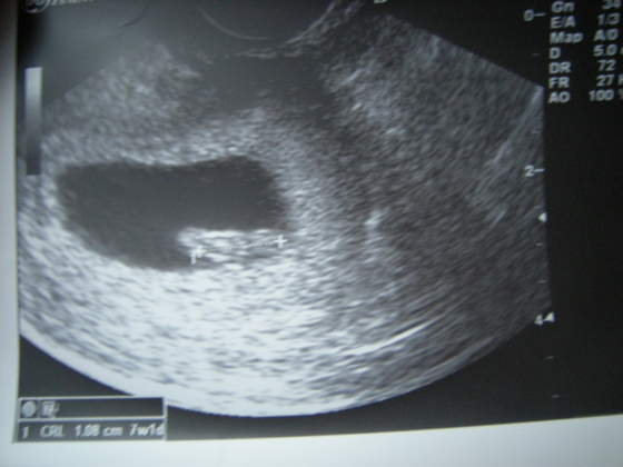 No to daję w odpowiednim dziale... Dzidzia tu ma 1 mm i jest to równo 7 tygodni ciąży, pierwszy dzień ósmego tygodnia.